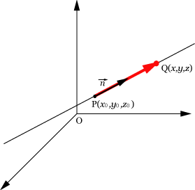 直線は,空間中の点と方向ベクトルが決まれば,一意的に決まる。